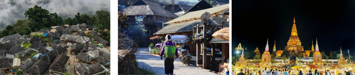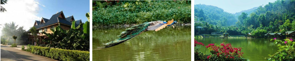 上午:乘车前往【傣家村寨】(游玩时间约150分钟)体验自然、古朴、优美、浓郁的傣家生活,观赏民族手工艺、佛寺、逛傣家早市等等。后用中餐